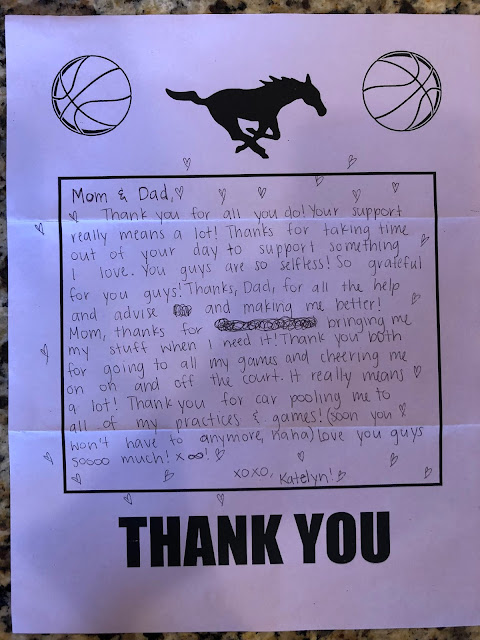 I got this beautiful rose and sweet letter from Katelyn at the game tonight! It was a fun night...they didn't win, but Katelyn and the rest of the team played so well! It was great to see Katelyn back on fire! Wish Bill could've been here... he's up in Flagstaff for the Iditarod tonight. Thank you for the sweet letter Katelyn!